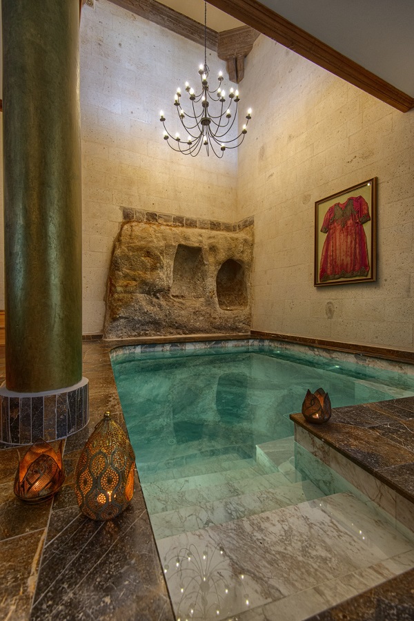 Yazıda, Museum Hotel’in 34 odasının doğrudan kayaya oyulmuş yapısına, yüksek tonozlu tavanlarına, kemerli kapılarına ve taş dokusunu tamamlayan sıcak aydınlatma anlayışına da yer verildi. Özellikle üç Imperial Pool Suite’te bulunan kayaya oyulmuş özel havuzlar, dikkat çeken detaylar arasında gösterildi.